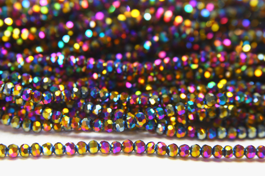 2mm Metallic Rainbow AB Facetted Round Crystals