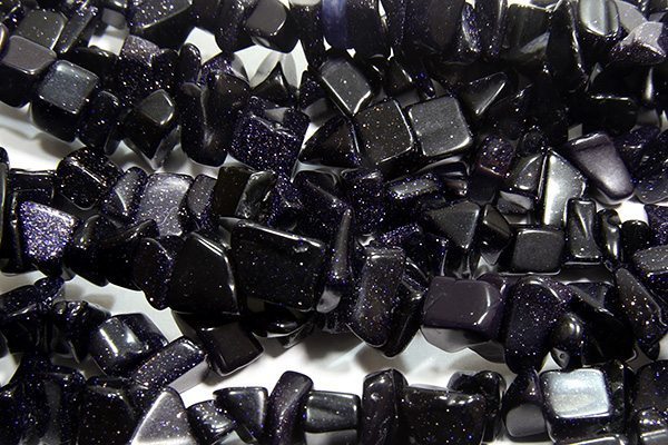 A double length strand of high quality Blue Goldstone Chips. The irregular shape of these beautiful beads gives a very natural and organic look to your finished designs. A miniature galaxy within every bead. The deep navy blue of Blue Goldstone Chips is simply stunning. The perfect semi precious stone for your party costume jewellery.
