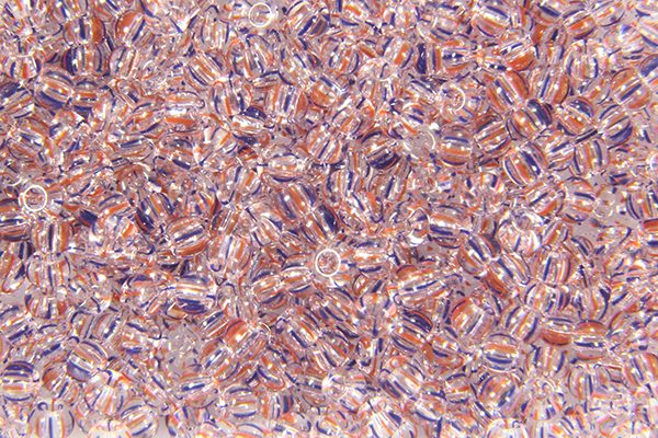 Blue and Red Stripes on Crystal Preciosa Seed Beads