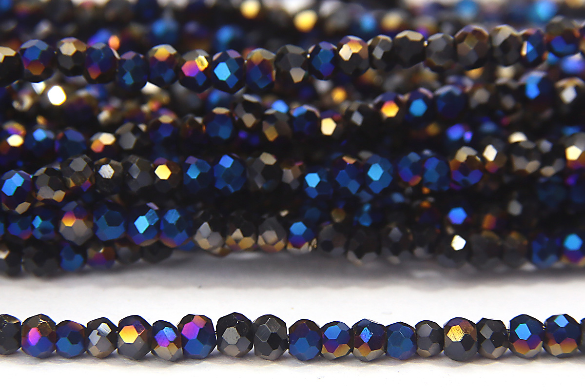 Size 11/0 Disco Blue Aurora MicroCrystal beads. Made at 1.5mm x 2.0mm to match the size of Toho 10/0, Miyuki 11/0 or Preciosa 10/0 seed beads perfectly. Made from high quality facetted crystal glass in packs of approximately 200 beads.
