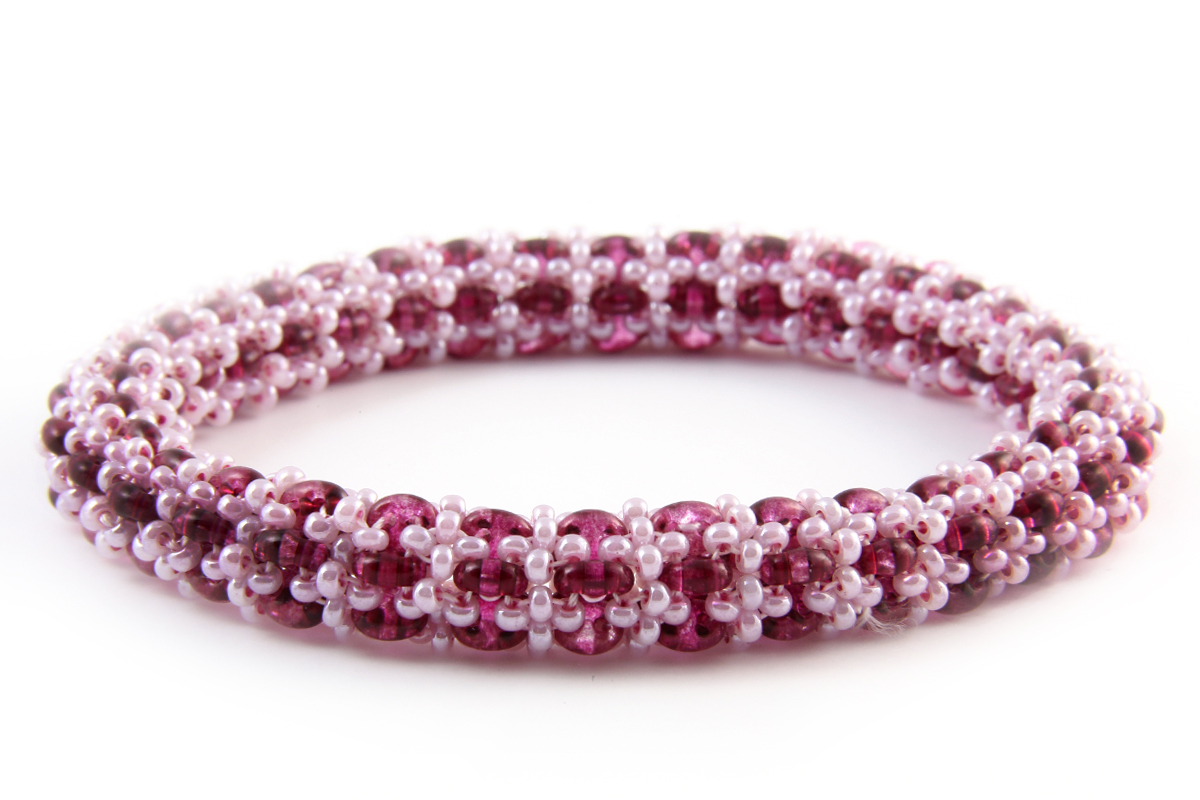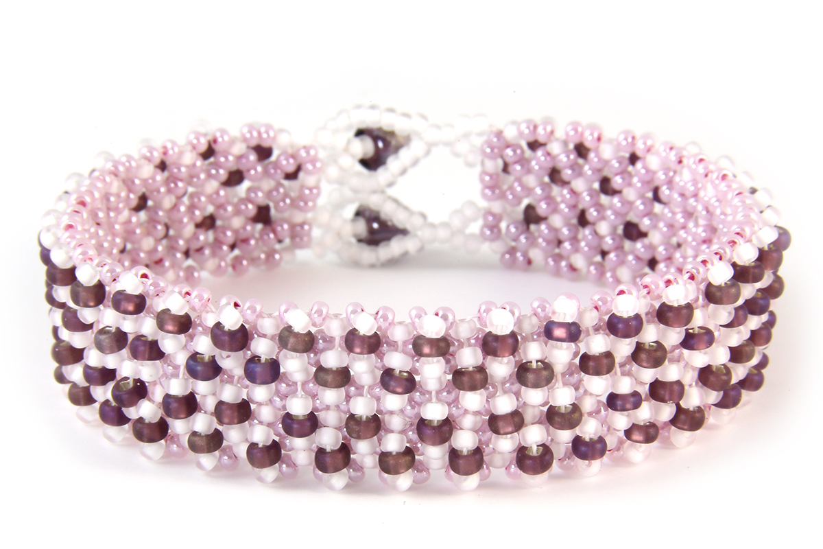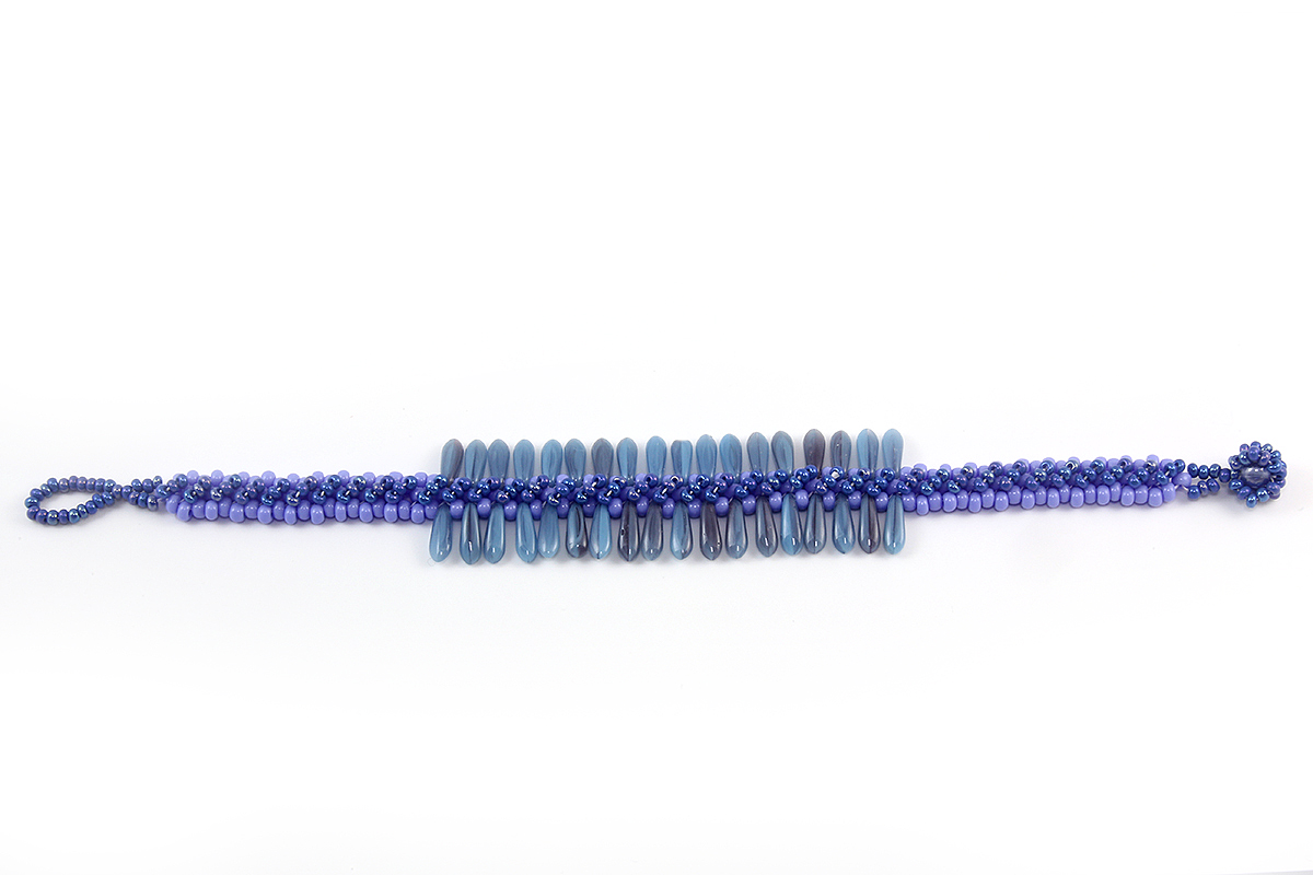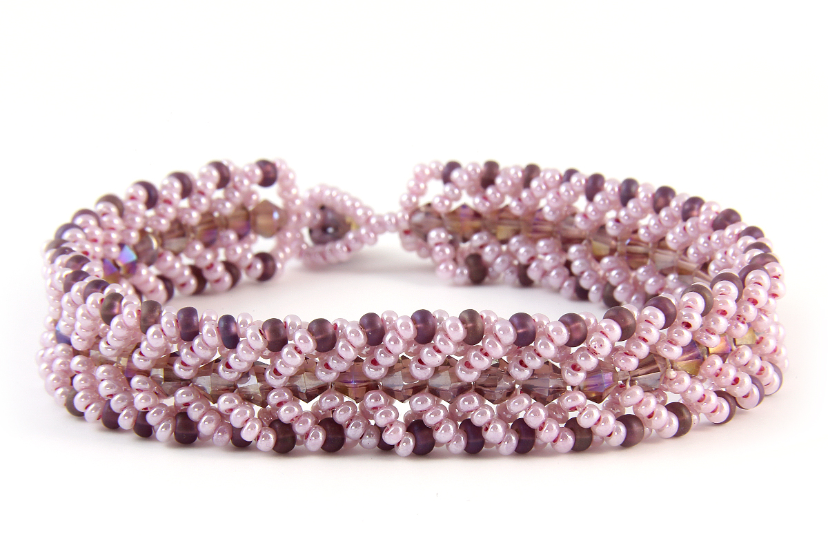 There are two different variants to choose from; Azure and French Rose. Azure contains beads with cool blue shades, coordinating white jewellery thread and silver coloured seed beads. French Rose includes elegant shades of purples and pinks, with coordinating shades of clear aurora beads, white seed beads and clear dagger beads.