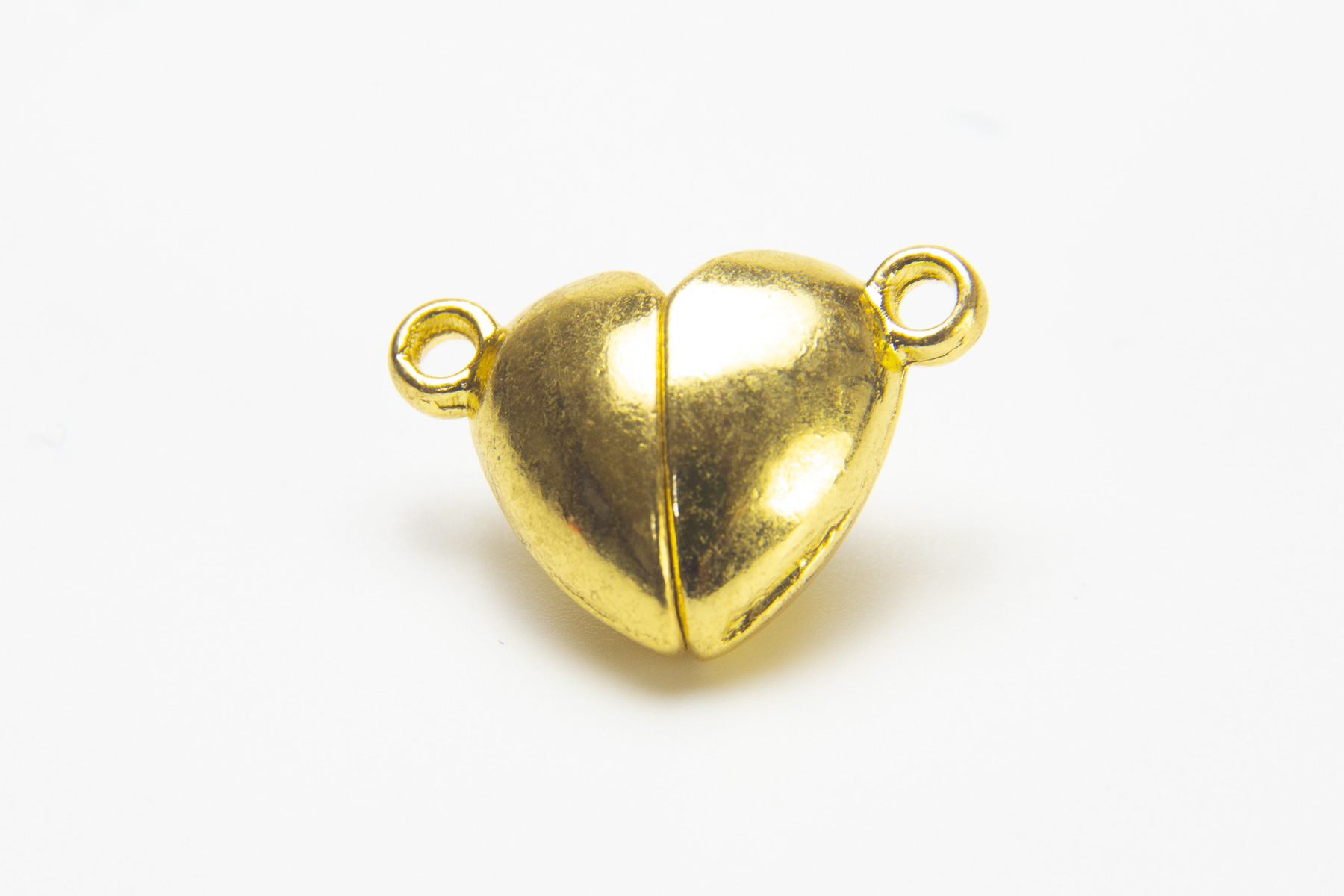 This 16x12mm sized clasp is plated with Gold. It has a Heart shape and has a Magnetic closure. There is 2 pieces per pack.