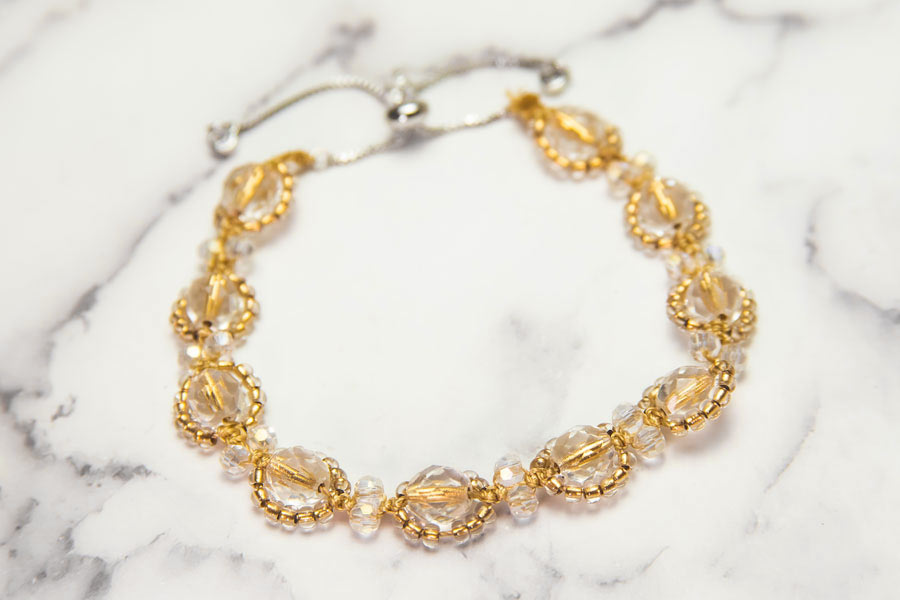 Make this fantastic bracelet with beautiful 8mm Czech beads and an adjustable slide clasp! This pattern creates a super classy and unique bracelet that you can make in any colour or colours you like!