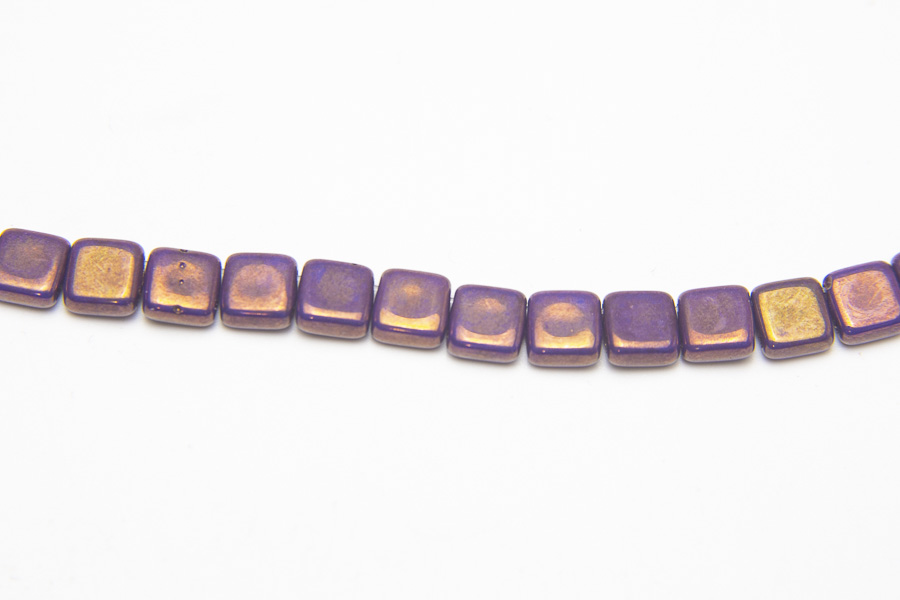 A 33 bead strand of Copper Fumed Corinthian Purple 2-Hole Tiles made from the highest quality pressed Czech Glass. With 2 holes passing through each one, these beads are excellent for multistranded jewellery and bead weaving designs.