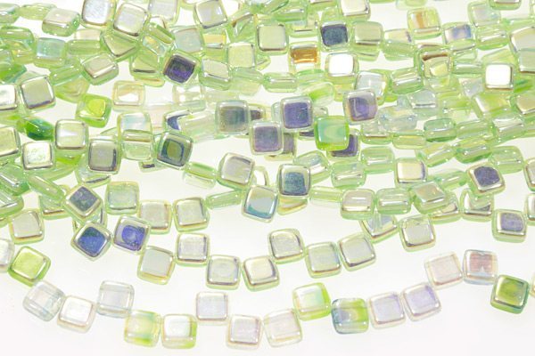 Ice Green AB 2-Hole 6mm Tile Beads