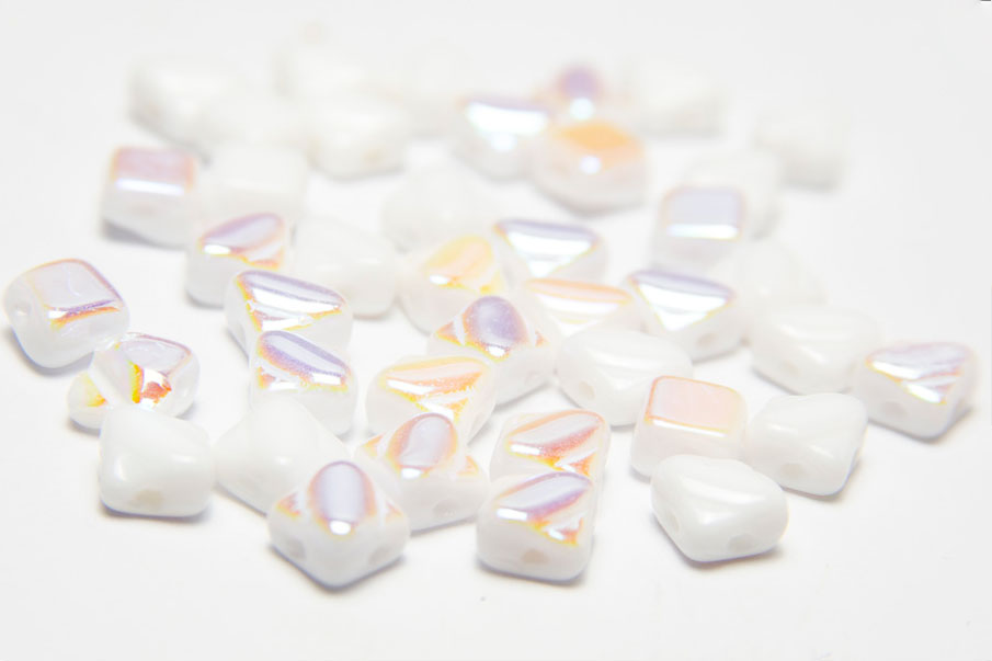 6x6mm Snow White AB Czech Silky Beads, 40 beads