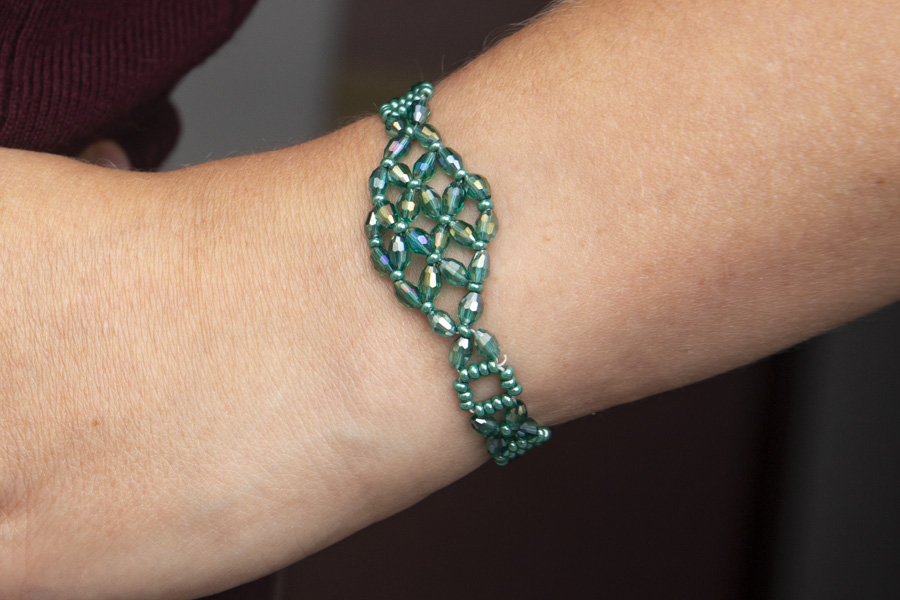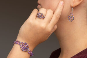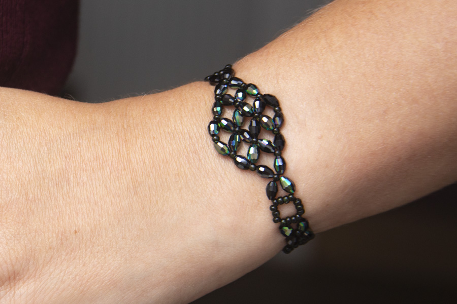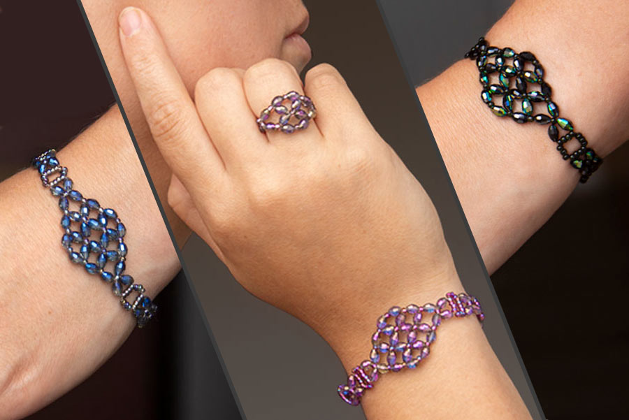 Learn how to use beaded netting weave to create these delicate crystal bracelet and earrings. This stunning set is extremely easy to make, using a simple but effective bead weaving technique. It’s the perfect beginners jewellery making kit or advanced jewellery makers alike.