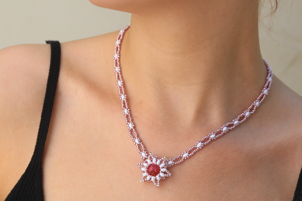 Using Twin Beads, Crystal Rondelles, Preciosa Seed Beads and a central Crystal Rivoli, this necklace kit will show you how to use unique beads to create beautiful handmade jewellery.