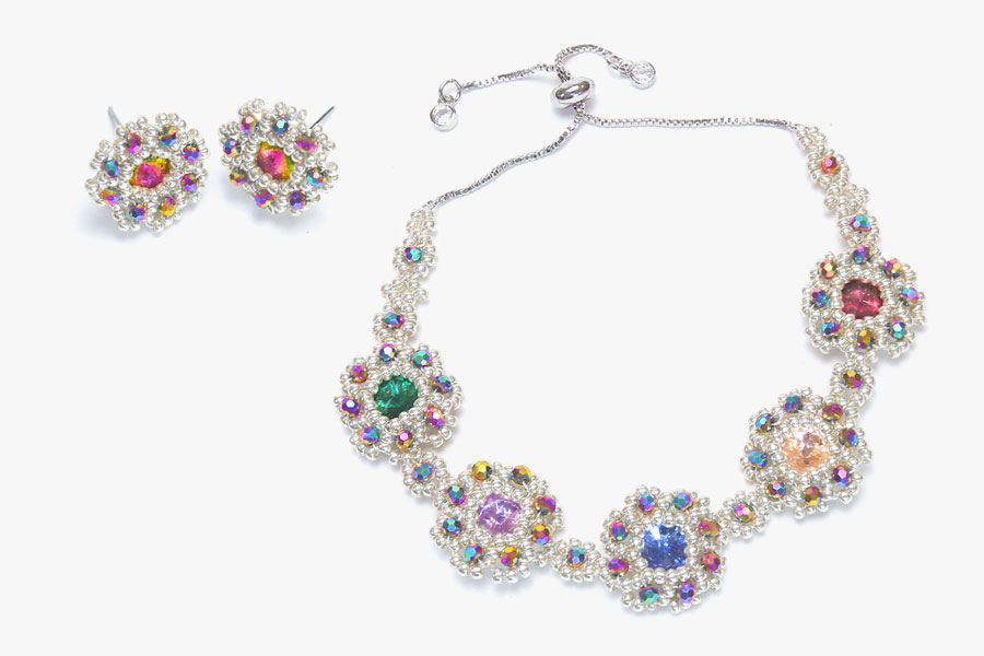 Learn how to make our new crystal beaded bracelet kit. This floral-inspired crystal beaded bracelet and earring kit is a beautiful, seasonal jewellery-making kit full of fun. Create a gorgeous design using Preciosa seed beads, 2mm round crystal beads and our eye-catching 8mm Rivoli, featuring a classy gold plated clasp.