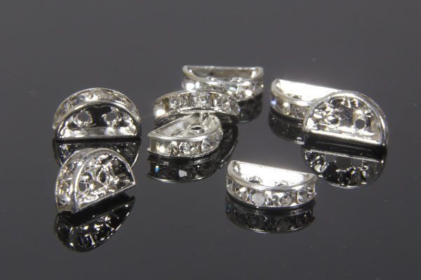 13x7mm Silver Plated Crystal Slider, 8 pieces