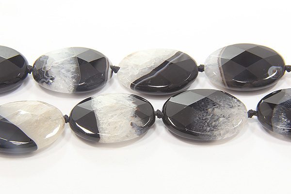 Banded Black Agate with Druzy Crystal Gemstone, 30×22 Ovals 16″ Strand